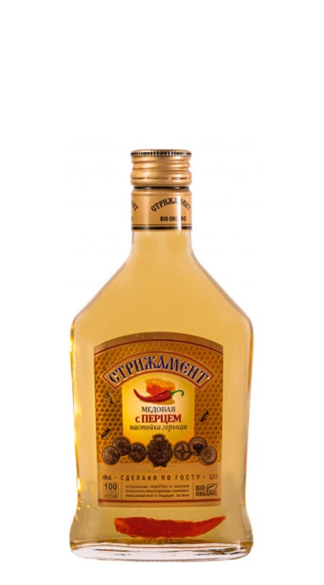 настой перца красного, настой перца душистого, мед натуральный, настой донника, настой лимонной корки и дуба. В бутылку помещается многократно вымоченный в водке перец.