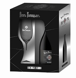 Вино игристое Левъ Голицын Коронационное брют белое 0,75л+Бокал Набор подарочный