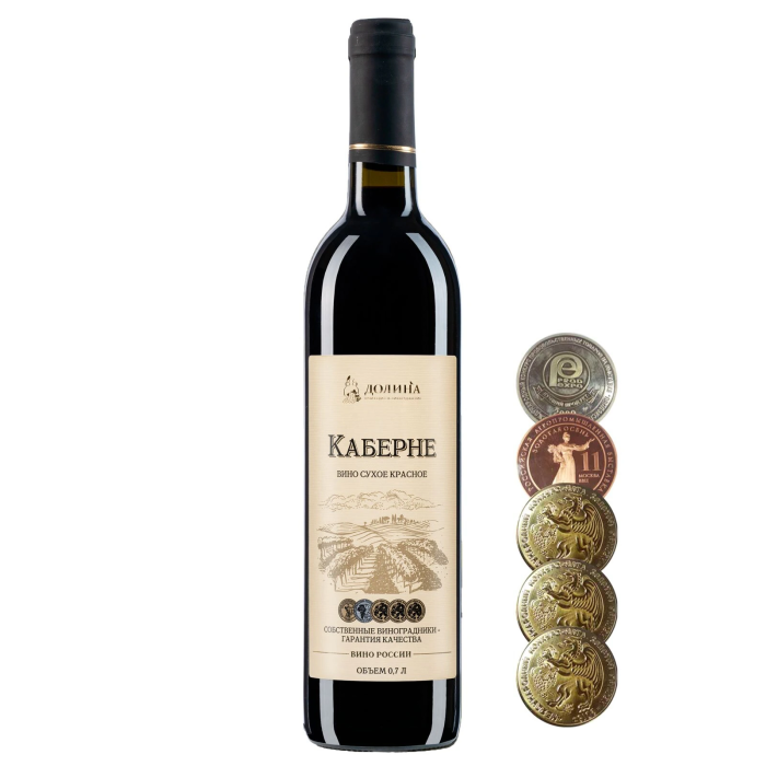 Вино изготовлено из винограда сорта Каберне-Совиньон, выращенного на территории Краснодарского края.