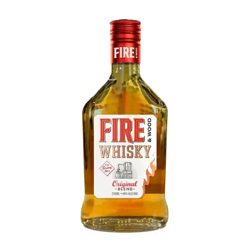 "FIRE WOOD" купажированный виски, произведенный по уникальной технологии, собственная разработка приготовления сусла - «Красная схема» метод низкотемпературного разваривания без последующей фильтрации. Использование щепы температуры обжига 180°градусов придает виски вкус, схожий с американским профилем.