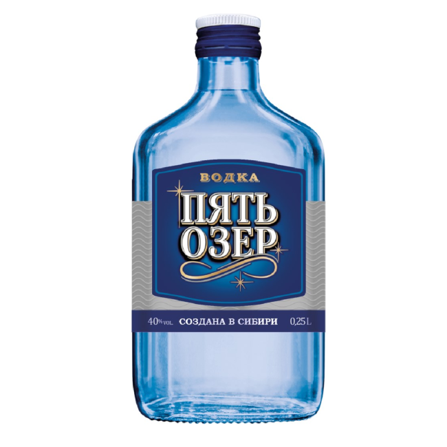 Водка Пять озер создана на основе воды таежных озер. Эта вода уникальна, она насыщена кислородом и серебром. Для её очистки при производстве водки «Пять Озер» используются только самые мягкие фильтры.