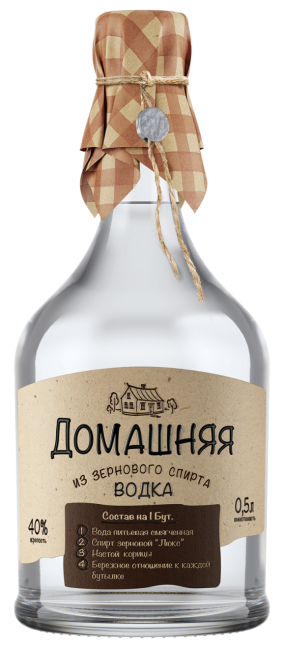 Питейный Дом, "Домашняя" — классическая водка, в производстве которой используется зерновой спирт класса "Люкс", умягченная питьевая вода и настой из корицы. В результате получается мягкая, гармоничная водка с едва уловимыми коричными нюансами.