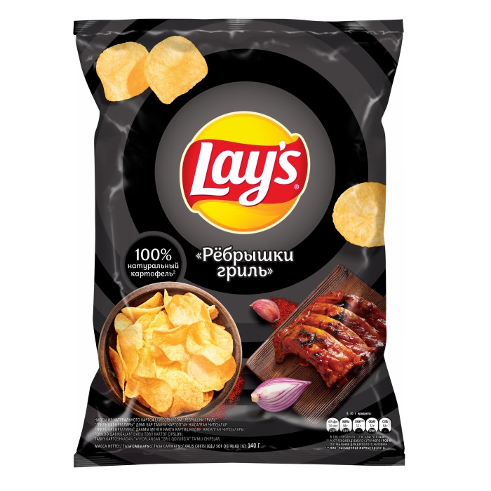Картофель, растительные масла*, комплексная пищевая добавка [сахар, гидролизованный растительный белок (содержит сою), соль, специи (порошки лука и чеснока, черный и белый перец), усилители вкуса и аромата (глутамат натрия 1-замещенный, 5'-рибонуклеотиды натрия 2-замещенные), мука рожкового дерева, порошки зеленого сладкого перца и жареного лука, вкусоароматические вещества (содержат экстракт дрожжей), регулятор кислотности (лимонная кислота), краситель (экстракт паприки), экстракт кофе, говяжи