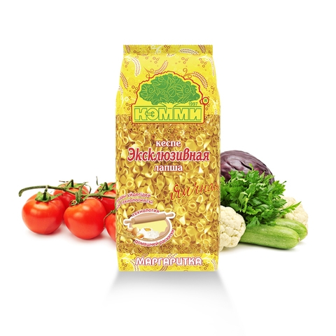 "Эксклюзивная лапша Маргаритка" - это любимая всеми яичная лапша, выполненная по технологии домашней раскатки, но отличающаяся оригинальной формой, которая не только подчеркнет вкус приготовленного блюда, но и замечательно украсит его. Лапша произведена из твердых сортов пшеницы, не разваривается при варке и не слипается.