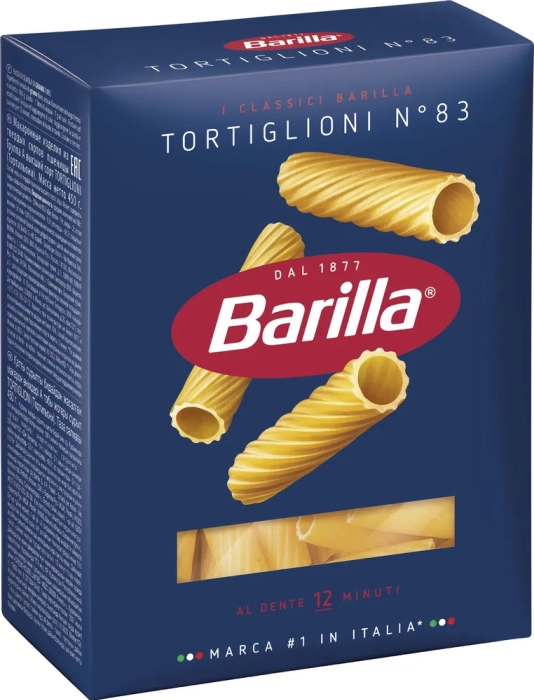 Тортильони Barilla — это полые короткие трубочки с рифлением. Они отлично сочетаются с густыми мясными, грибными или сливочными соусами, которые обволакивают пасту, а не стекают с нее.