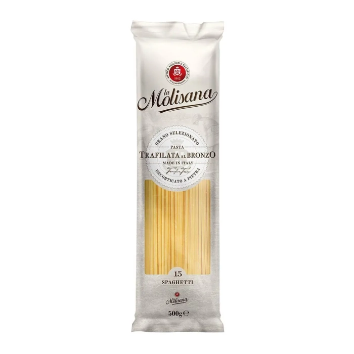 Спагетти La Molisana Spaghetti сделаны из муки твердых сортов, содержащей чуть меньшее количество клейковины, чем обыкновенная мука. Она хорошо поглощает воду, макароны из нее при варке увеличиваются и не развариваются.