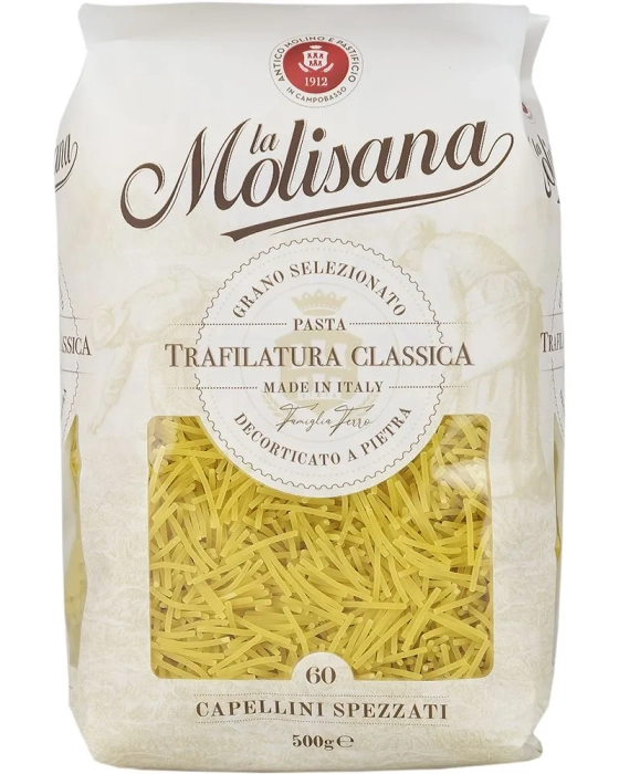 Макаронные изделия La Molisana Вермишель идеально подходят для приготовления самостоятельных гарниров и запеканок.Благодаря размеру мелкую вермишель удобно добавлять в легкие супы, в том числе для детей. При производстве продукта используются только натуральные ингредиенты без искусственных консервантов — мука из твердых сортов пшеницы и вода. Сниженное содержание клейковины в составе помогает