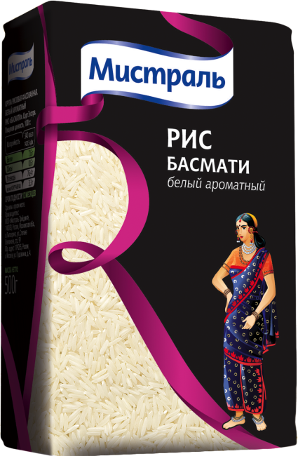 Рис Басмати выращивается у подножий Гималаев. Благодаря длинным тонким зернам, нежному аромату и изысканному вкусу во всем мире этот рис заслуженно считается Королем Риса. Басмати используется в приготовлении самых разнообразных блюд, идеален для рассыпчатых гарниров, великолепно готовится на пару.