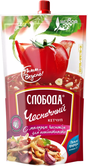 Вода, томатная паста, сахар, соль поваренная, специи (чеснок сушеный, зелень петрушки, гвоздика, корица, красный молотый перец), уксус, пищевые волокна