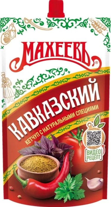 Кетчуп МАХЕЕВЪ Кавказский приготовлен с натуральными специями. Такой продукт идеально сочетается с мясом и овощами на гриле. Сочные барбекю, купаты и шашлык в комбинации с кетчупом станут еще более вкусными и ароматными.