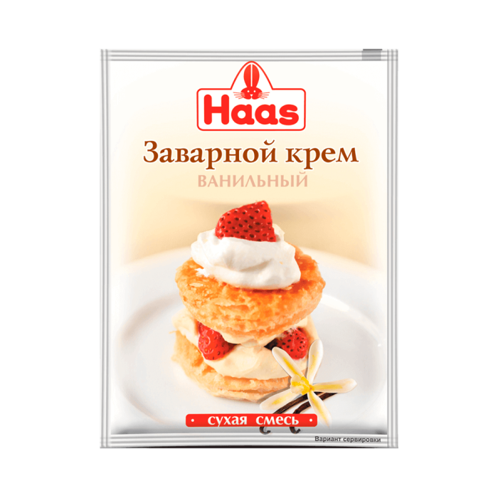 Заварной крем ХААС идеален в качестве начинки для пирожных из заварного, слоёного и песочного теста (эклеров и профитролей, круасанов, корзиночек), а также для кондитерских изделий с вафельной основой (трубочек, домашних вафель).