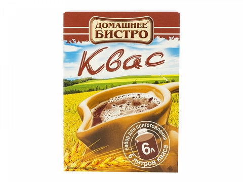 Сухой квас торговой марки Домашнее Бистро - 100 % натуральный продукт, 6 литров кваса за 24 часа. Состав: 2 пакетика концентрата квасного сусла: солодовый, ячменный экстракты и экстракт хмеля(120 гр.); 2 пакетика с активными дрожжами (4 гр.).