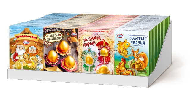 Набор для окрашивания и декорирования пасхальных яиц и придания им золотого блеска. Окрасьте пасхальные яйца золотом и соберите для них подставки с сюжетом из "Курочки-Рябы","Золотая хохлома","Золотые сказки","На золотом крыльце"