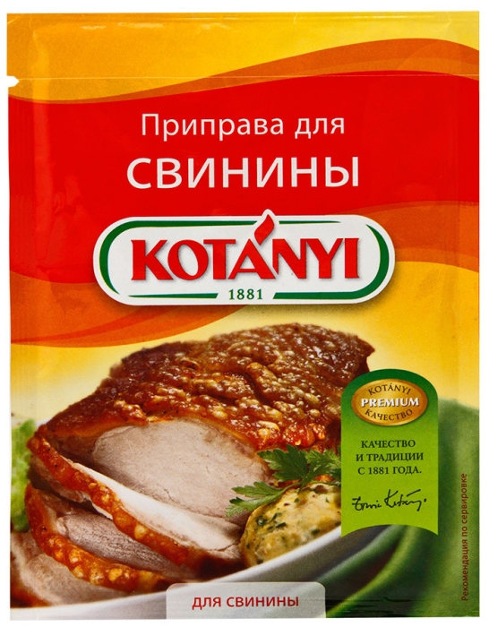 «Приправа для свинины» KOTÁNYI – это гармоничное сочетание специй и трав, незаменимое при приготовлении блюд из свинины.