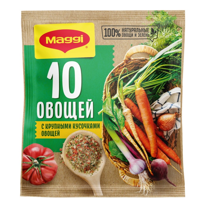 паприка (0,8 %), сельдерей, капуста савойская), свекла, шпинат), зелень сушеная и специи молотые (1,6 %) (петрушка (1,5 %), лавровый лист, укроп), кукурузный