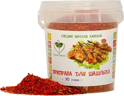 кинза (молотая); паприка красная, сладкая (молотая); чеснок (сушеный); чабрец; черный перец (молотый); чаман; орегано; острый перец красный(молотый); соль (не более 5 % от общей массы).