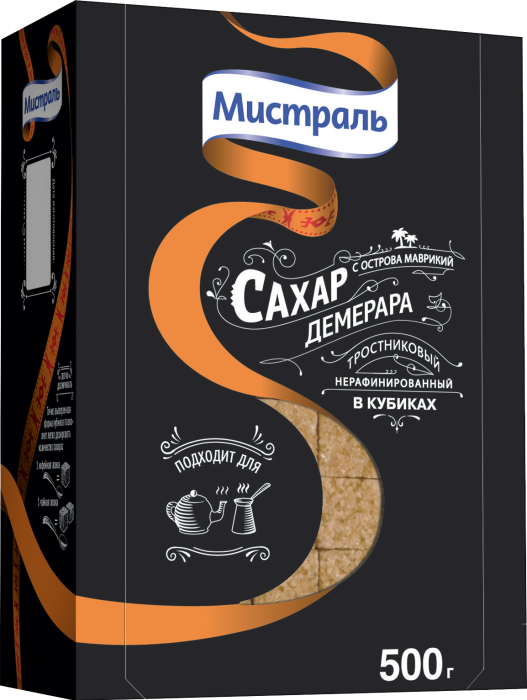 Нерафинированный сахар получают путем выпаривания из свежевыжатого сока сахарного тростника, насыщенного патокой. Богатая микроэлементами тростниковая патока придает сахару золотистый цвет и карамельный аромат. Сахар в кубиках Мистраль изготовлен из нерафинированного тростникового сахара Демерара, привезенного с тропического острова Маврикий.