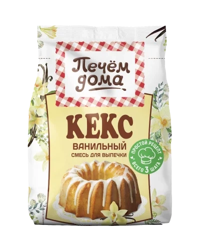 мука пшеничная в/с, сахар, молоко сухое обезжиренное, разрыхлители теста (пирофосфат натрия, гидрокарбонат натрия - сода пищевая), соль, ароматизатор натуральный «Ваниль», экстракт ванили.