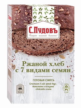 Смесь для выпечки «Ржаной хлеб с 7 видами семян С.Пудовъ» поможет вам легко и просто приготовить ароматный, вкусный и полезный хлеб.Смесь для выпечки «Ржаной хлеб с 7 видами семян С.Пудовъ» поможет вам легко и просто приготовить ароматный, вкусный и полезный хлеб.Рецептура этого ржаного хлеба разработана специально для тех, кто придерживается принципов здорового питания. Семена богаты витаминами и микроэлементами, которые дают организму силы и укрепляют его защиту.