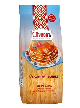 Овсяные блины – традиционное блюдо русской кухни. Овсяная мука, которую мы добавили в смесь для выпечки, богата клетчаткой, в ней содержатся витамины и полезные минеральные вещества.Готовая смесь «Овсяные блины С.Пудовъ» поможет вам легко и просто испечь вкусные бездрожжевые блины.Овсяные блины – традиционное блюдо русской кухни. Овсяная мука, которую мы добавили в смесь для выпечки, богата клетчаткой, в ней содержатся витамины и полезные минеральные вещества.