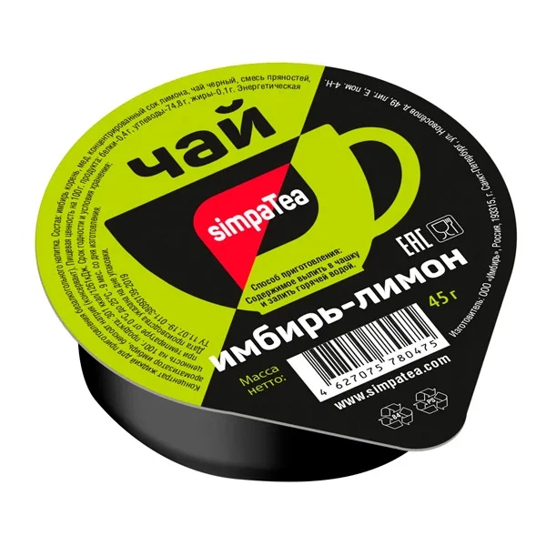 Имбирь-лимон: имбирь (корень), вода, сахар, концентрированный сок лимона, зеленый чай, смесь пряностей, консервант - сорбат калия.
