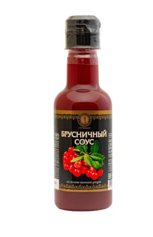 брусничное пюре, натуральный винный уксус, сахар. Массовая доля уксусной кислоты 1 %. Вкус и цвет соуса может незначительно отличаться в зависимости от сорта брусники. Возможно включение твёрдых частиц брусники и отслаивание жидкой фазы.