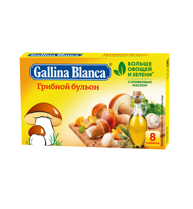 Соль; Усилители вкуса и аромата (глутамат натрия, инозинат натрия); Кукурузный крахмал; Растительный жир (пальмовый); Мальтодекстрин; Экстракт растительных белков (содержит сою); Ароматизаторы: грибов, карамелизированного лука, кайенского перца (содержит эмульгатор моно- и диглицериды жирных кислот, антиокислитель альфа-токоферол) содержат антислеживающий агент диоксид кремния аморфный; Растительные масла (оливковое и подсолнечное); Краситель сахарный колер Ⅳ; Овощи (петрушка, лук, морковь); Гри