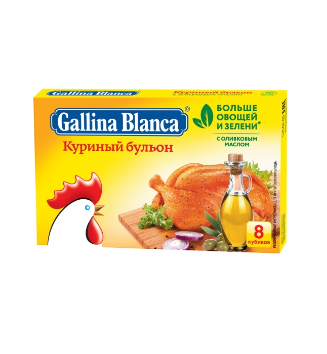 Соль; Кукурузный крахмал; Растительный жир (пальмовый); Мальтодекстрин; Усилители вкуса и аромата (глутамат натрия 1-замещенный, 5' – рибонуклеотиды натрия 2- замещенные); Сахар; Экстракты растительных белков (содержат глютен); Растительные масла (оливковое и подсолнечное); Специи (куркума, сельдерей, перец); Ароматизаторы: курицы (содержит яйца, антиокислители (аскорбиновая кислота), регуляторы кислотности (ацетат и диацетат натрия, лимонная кислота), стабилизаторы (гуммиарабик, эфир крахмала и