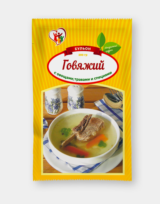 соль поваренная пищевая, сахар, ароматизатор «Говядина», растительное масло, морковь сушеная, крахмал кукурузный, зелень петрушки, лук гранулы, паприка молотая, перец черный молотый, перец душистый молотый, лавровый лист молотый, чеснок сушеный гранулы, усилитель вкуса и аромата (глутамат натрия), корень пастернака.