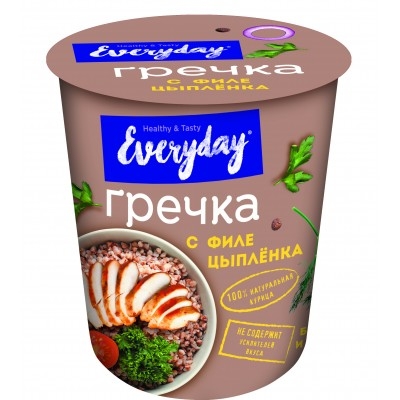 крупа гречневая быстрого приготовления, мука пшеничная, кусочки курицы, лук жареный (лук сушеный, растительное масло, соль), соль, жир растительный, овощи сушеные (морковь, паприка зеленая, паприка красная, укроп, петрушка), ароматизатор курицы, чеснок сушеный, перец черный, лавровый лист молотый. Содержит глютен.