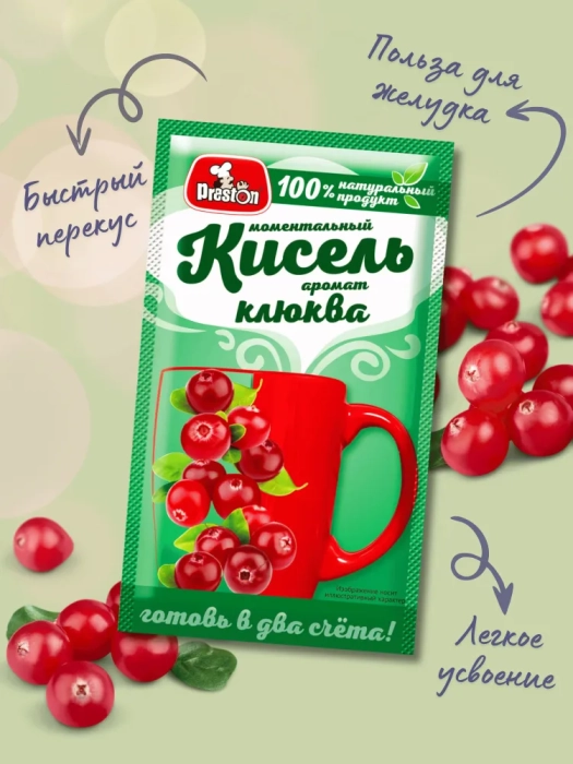 Моментальный кисель Preston - это вкусный и питательный напиток, который станет отличным дополнением к вашему столу. В его составе отсутствуют ГМО, искусственные добавки и красители, что делает его безопасным для здоровья взрослых и детей.