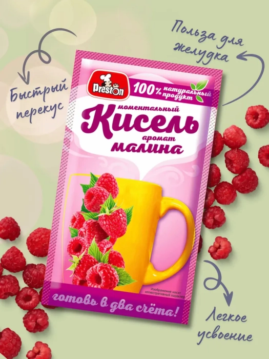 Моментальный кисель Preston - это вкусный и питательный напиток, который станет отличным дополнением к вашему столу. В его составе отсутствуют ГМО, искусственные добавки и красители, что делает его безопасным для здоровья взрослых и детей.