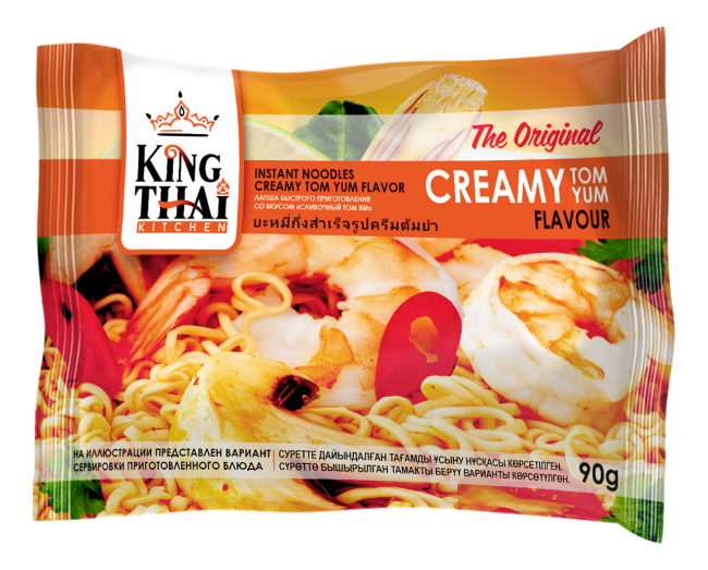 Лапша быстрого приготовления Kingthai Kitchen Том ям сливочный, 90г - традиционная корейская лапша быстрого приготовления, индивидуальная порция из высококачественной пшеничной муки с добавлением пряностей, креветок, лимона. Соус на основе молока с перцем чили добавит нежный кремовый вкус с острыми нотками.