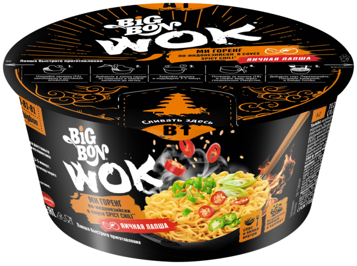 Лапша Роллтон б/п Big Bon Wok Ми Горенг по индонезийски в соусе спайси чили 85гр