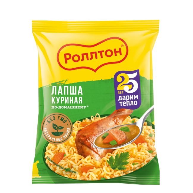 Лапша «Роллтон» с курицей такая вкусная, потому что мы строго следуем проверенной рецептуре: нежная яичная лапша, куриное мясо и натуральные овощи. Получается яркий насыщенный вкус, которым хочется наслаждаться снова и снова!