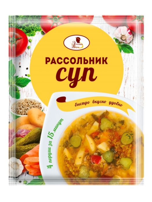 рис дробленый, соль, томатный порошок, сахар, морковь, картофельные хлопья, лук, мясо говяжье, дрожжевой экстракт, ароматизатор "говядина", растительный жир, усилитель вкуса Е621, огурцы соленые сушеные, укроп, антислеживатель Е551, ароматизатор "соленый огурец", "чеснок", лимонная кислота, пищевой краситель Е150d