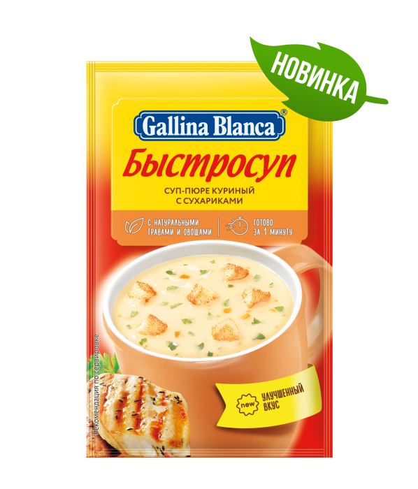 консистенции с добавлением небольших кусочков овощей зелени и гренок. Гренки целые, сохраняющие свою
