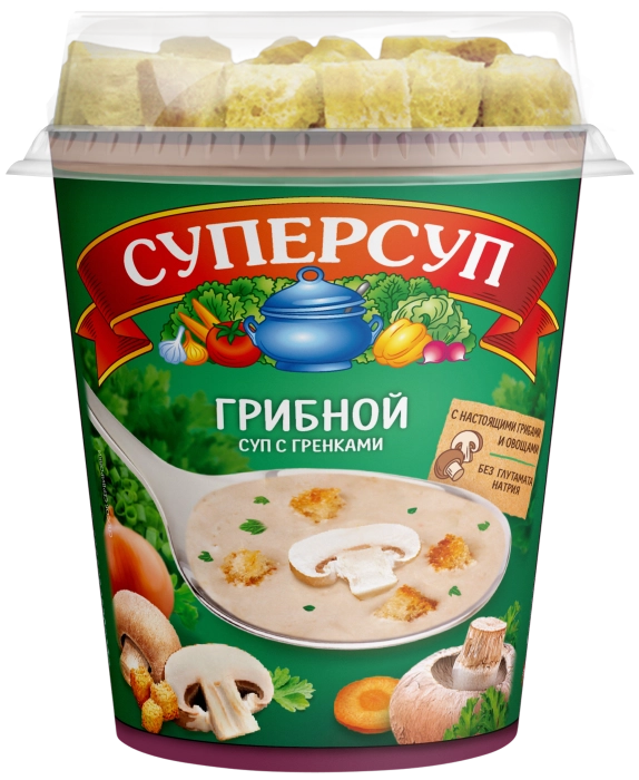 Густой грибной суп в стакане с кусочками грибов и овощей создан для настоящих ценителей домашней кухни. Гармоничное сочетание грибов, душистых приправ и ароматной зелени дополняют хрустящие пшеничные гренки. Сытный обед без хлопот!