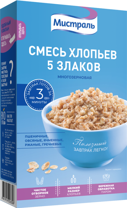 Секрет натуральности хлопьев Мистраль прост: наши хлопья — это то же зерно, только плоское. Мы закупаем злаки в оптимальных для них климатических зонах России, очищаем от шелухи, не затрагивая отрубевую оболочку, пропариваем под давлением и расплющиваем. Зерно остается цельным и не теряет своих природных свойств. Теперь можно приготовить полезный горячий завтрак, потратив лишь несколько минут.