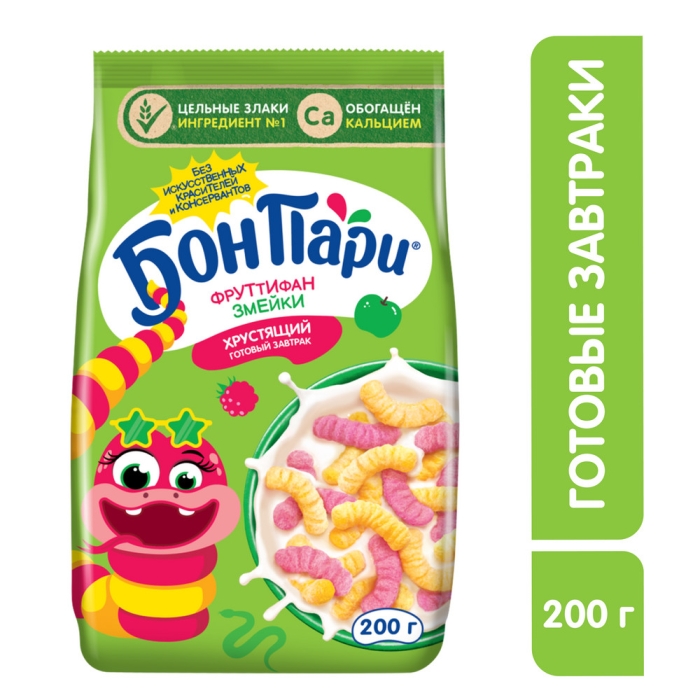 Порадуй себя и своих близких хрустящим полезным готовым завтраком БОН ПАРИ®. ФРУТТИФАН.ЗМЕЙКИ: