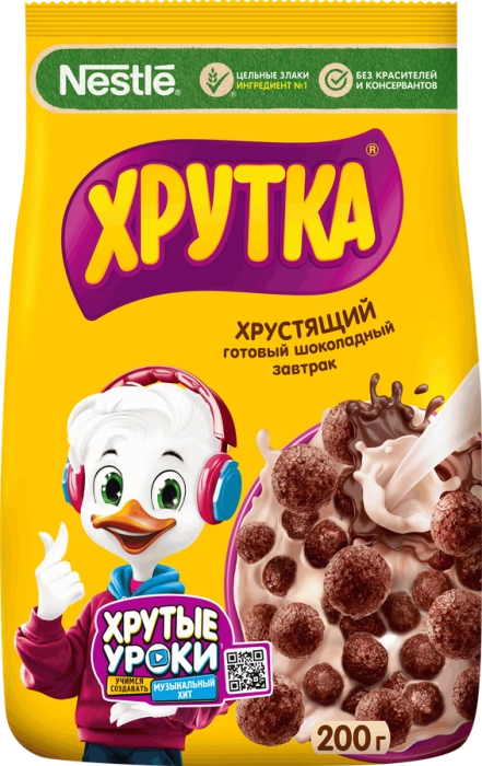 Готовый завтрак ХРУТКА Шарики Шоколадные хорошо насыщает, заряжает силой и энергией на весь предстоящий день. Хрустящие, легкие и умеренно сладкие шоколадные шарики рекомендуется употреблять с молоком, йогуртом или другой жидкостью по вкусу.