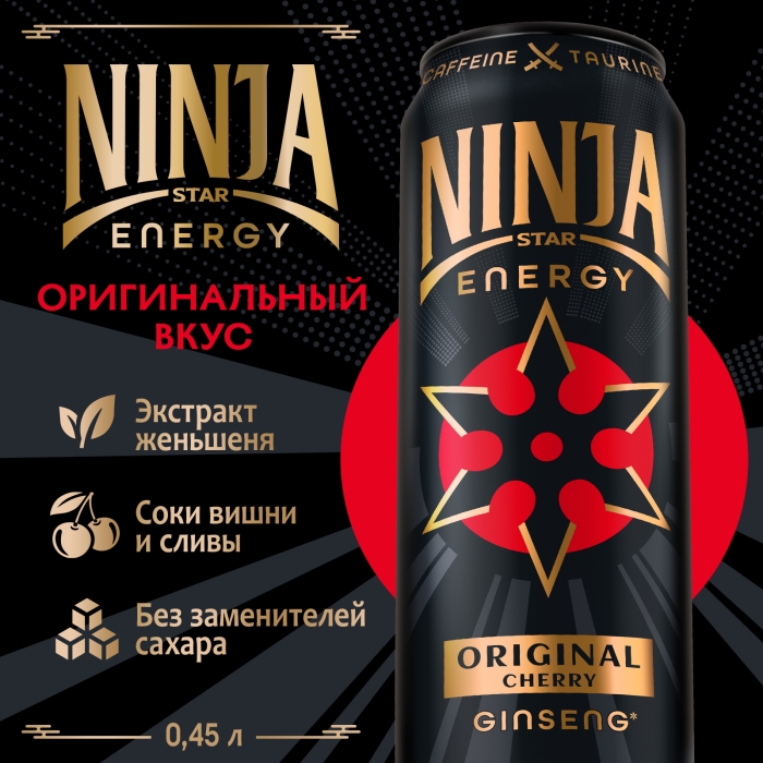 Напиток безалкогольный тонизирующий (энергетический) газированный витаминизированный «Ninja Star Energy Original Cherry» (Ниндзя Стар Энерджи Ориджинал Черри)»