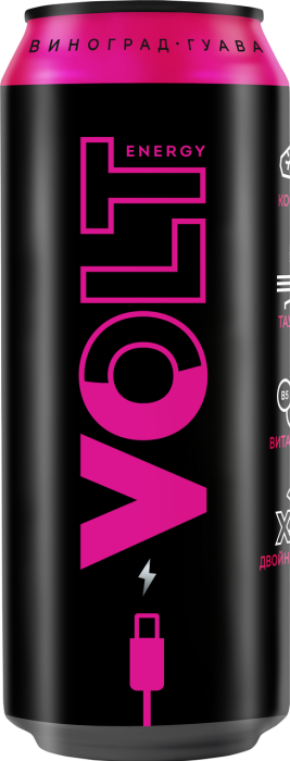 Безалкогольный тонизирующий газированный напиток Volt Energy (энергия вольта) со вкусом винограда и гуавы пастеризованный с применением консервантов. Новый энергетический напиток, который обладает бодрящим эффектом за счет своего состава: кофеина, таурина, витаминов B3, B5, B6 и B12, а также антиоксидантов. Его сладкие фруктовые ноты обеспечивают яркий насыщенный вкус, заряжающий энергией. Рекомендуется пить охлажденным.
