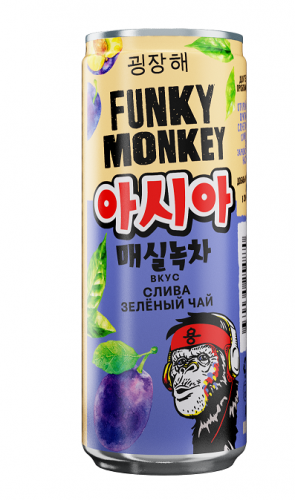 Лимонад Фанки Манки Крейзи Азия вкус Слива-Зеленый чай ж/б 0,33л