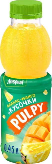 Pulpy Ананас-Манго - это натуральные кусочки ананаса в сочетании с соком ананаса и манго, артезианской водой, которые встряхнут тебя. Уникальная и удобная бутылка дает тебе возможность насладиться ярким вкусом напитка, когда тебе так необходим перерыв! Встряхни Pulpy, и он встряхнет тебя!