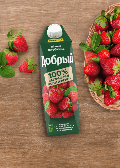 Новинка Добрый Клубника – это вкус лета в каждом стакане. Помимо природной пользы летних фруктов и ягод, состав содержит калий и антиоксиданты. Калий помогает номализации работы сердца, а антиоксиданты помогают клеткам восстанавливаться.