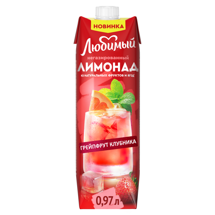 Негазированный Лимонад Грейпфрут-Клубника-Яблоко-Мята-Лемонграсс из натуральных фруктов и ягод от бренда Любимый. Сочетание грейпфрутового, яблочного, клубничного сока с экстрактами мяты и лемонграсса отлично освежит в жаркий день.
