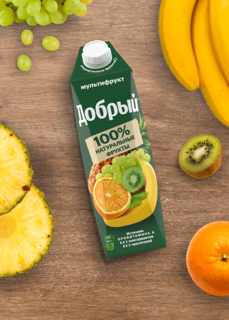 Добрый Мультифрукт нектар без консервантов и красителей в удобной упаковке для семейного обеда или ужина., Упаковка продукта может быть в цветном или белом виде.