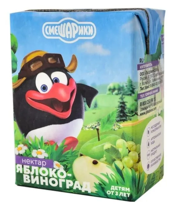 Нектары «Смешарики» изготовлены только из натуральных фруктов и ягод на основе артезианской воды. Предназначен для питания детей дошкольного и школьного возраста.