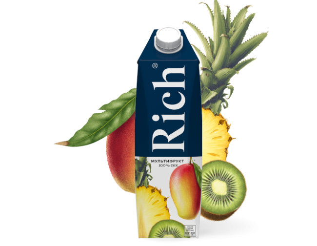 Освежите свой день экзотическими фруктами, которыми наполнен сок «Rich» Мультифрукт, открывая для себя новые грани вкуса.